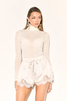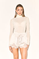 Introducing the GINA Cream Fine Knit High Neck Top perfect for a playful twist on layering. This semi-sheer, stretchy top hugs your silhouette letting you show off just the right amount of skin. Its high neck adds a chic edge, perfect for mixing and matching with your boldest accessories or favourite jackets.