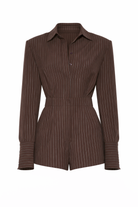 ALANI Brown Pinstripe Shoulder Pad Playsuit
