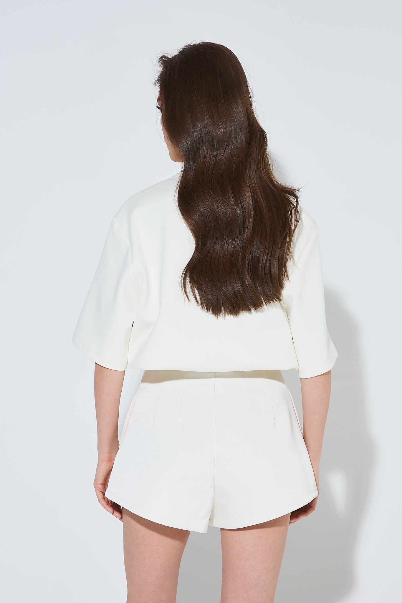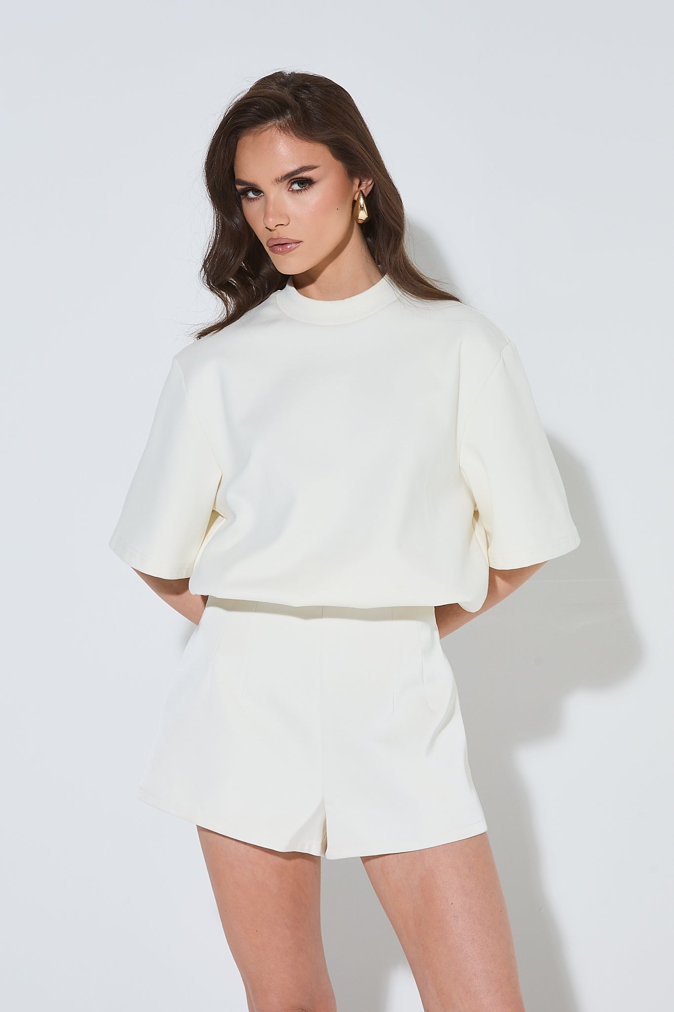 BLANCA Ivory Satin High Waisted Shorts