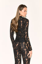 Elevate your wardrobe with the IMANI Black High Neck Lace Top, where delicate lace meets bold design. Its structured silhouette adds a playful edge to the intricate lace pattern.
