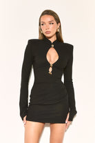 Step into the JOSEFINA Black Dress With Gold Trims and turn heads effortlessly. This figure-hugging little black dress features daring cut-outs and gold details that add just the right touch of shine. Perfect for nights when you want to play up your confidence and let your style shine.