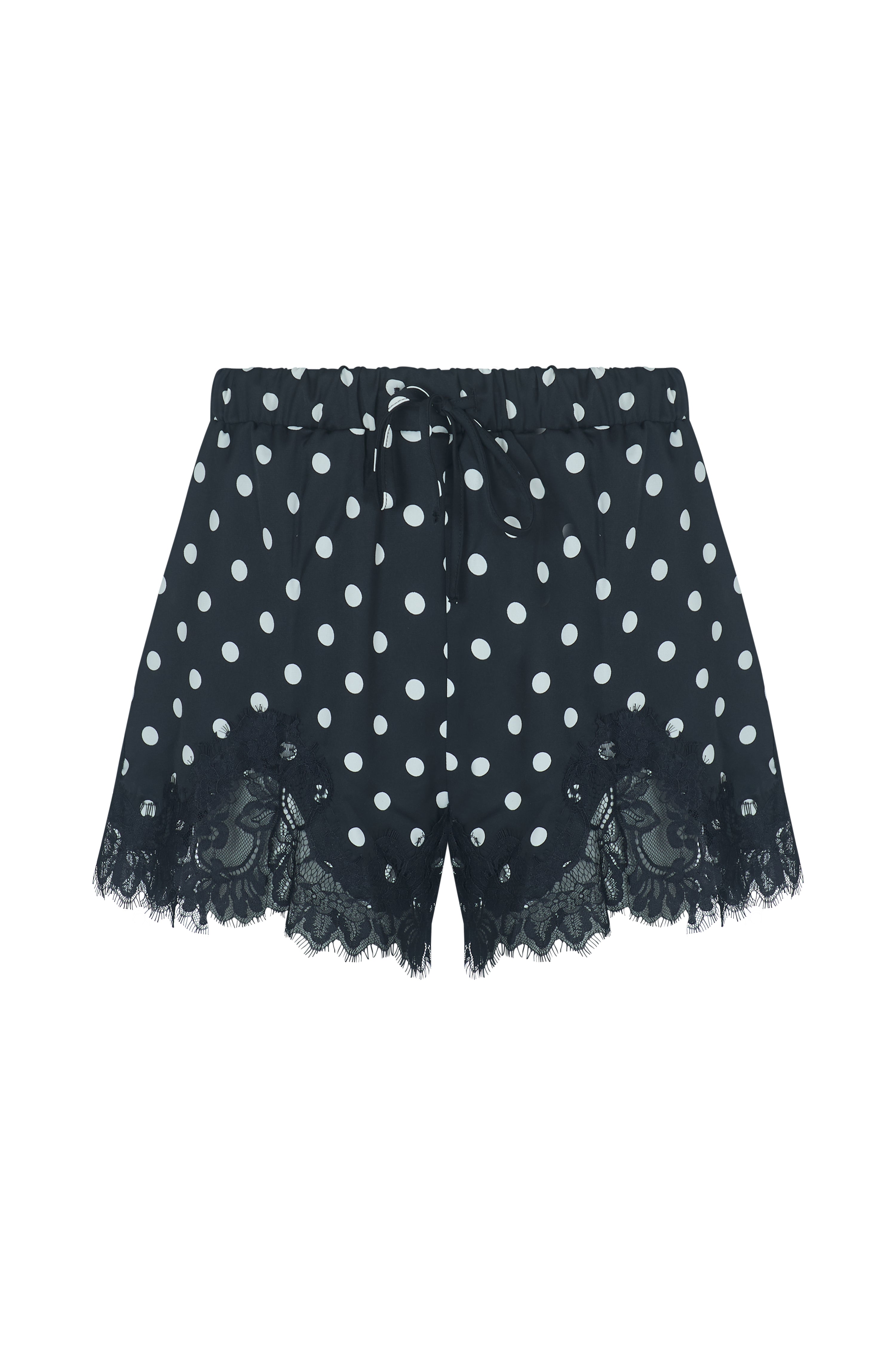 Re-introducing the LEOLA Black Polkadot Lace Shorts. Crafted from smooth black satin and delicate lace, these shorts blend comfort with flirty elegance. Perfect for dressing up, they hug your curves while keeping you cool and confident.