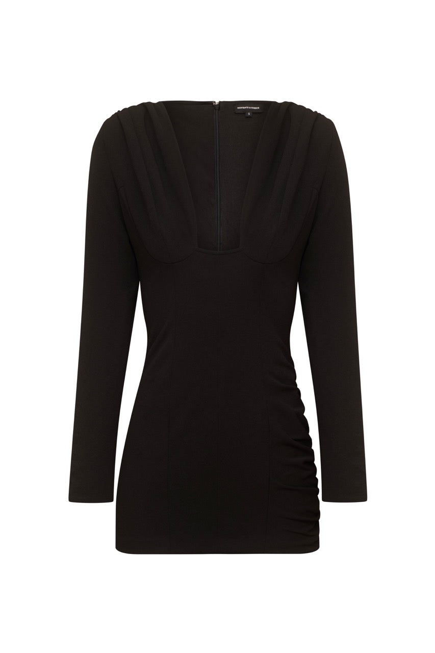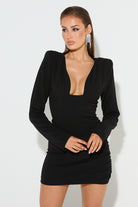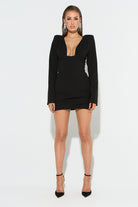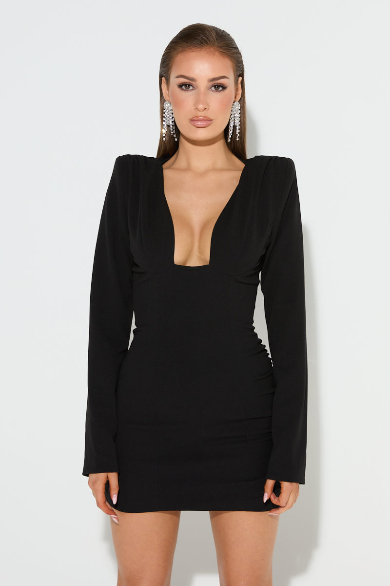 Enhance your curves and make a statement with the MATHILDÈ Black Deep Plunge Mini Dress. The deep plunge neckline flatters your figure while the form-fitting design accentuates your curves. Perfect for a night out this festive season.