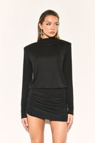 Slip into the MELIA Black Shoulder Pad Dress for a playful twist on a classic little black dress. With its stretchy fabric and bold shoulder pads, it hugs your curves while adding a confident, stylish edge.