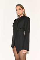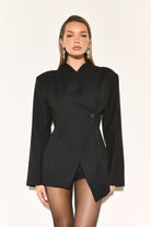 NAIA Black Wrap Over Collarless Blazer