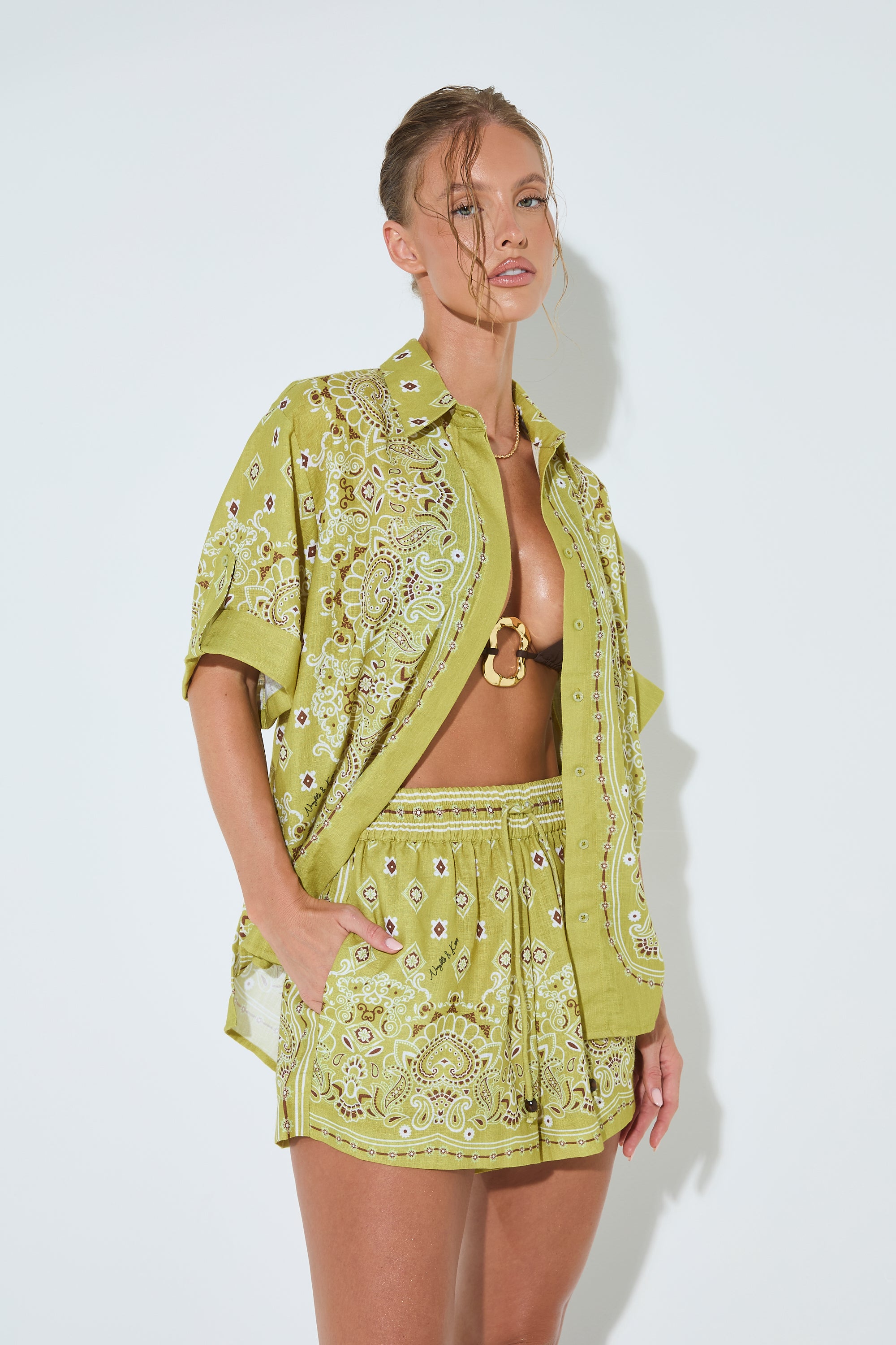Experience effortless summer style with our Palm Olive Shorts. These shorts are perfect for N&K beach days. The bold blue hue brings a vibrant pop to your seasonal wardrobe, combining comfort with considered design.