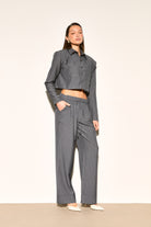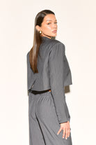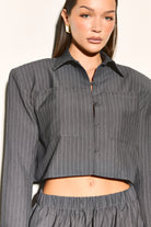 VELORA Grey Pinstripe Cropped Shirt